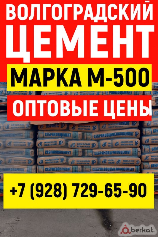 Цемент заводской Волгоградский по оптовым ценам. В наличии БИГБЕГИ по 1 тонне, также мешки по 50 кг прямо с вагона . Звонить по номеру : +7(928)-729-65-90 .